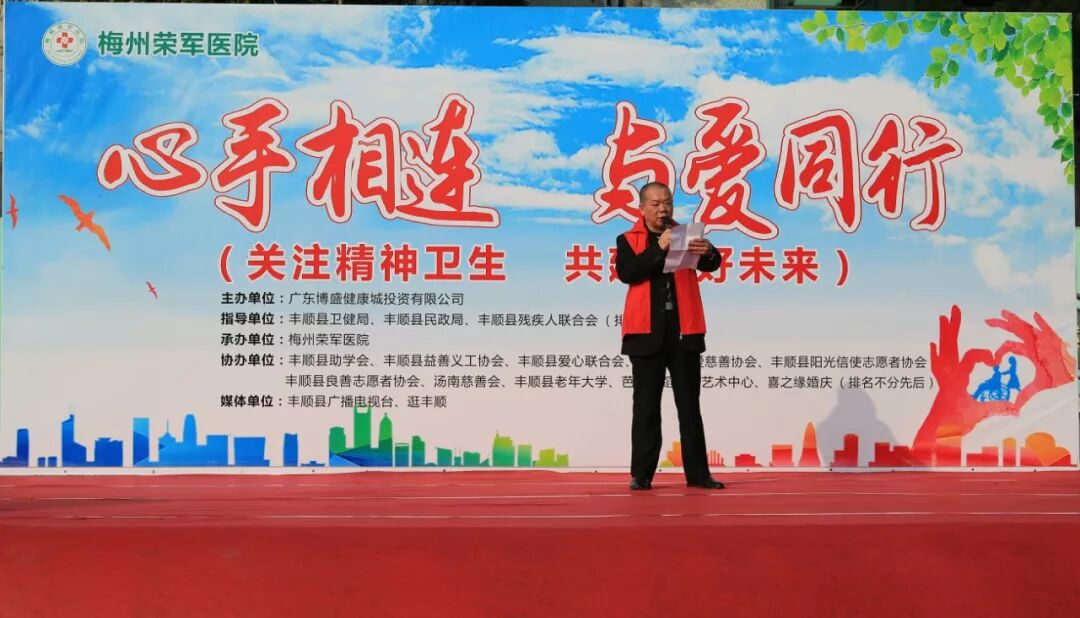 今天梅州荣军医院举办“心手相连、与爱同行”关爱患者活动显得尤为重要。这项活动既是关爱精神障碍疾病患者的活动,也是宣传精神卫生康复工作的活动。通过这项活动,一是宣传了精神障碍疾病可防、可控、可治;二是展示了我院在梅州市域精神卫生诊疗康复工作中所作出的一些探索及贡献,也是我院精神康复效果的一次集中展示;三是提示了社区精神康复是帮助精神障碍疾病患者康复并使其回归社会的重要一环。