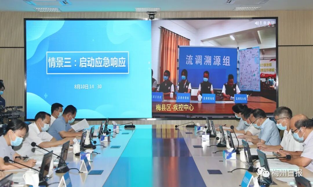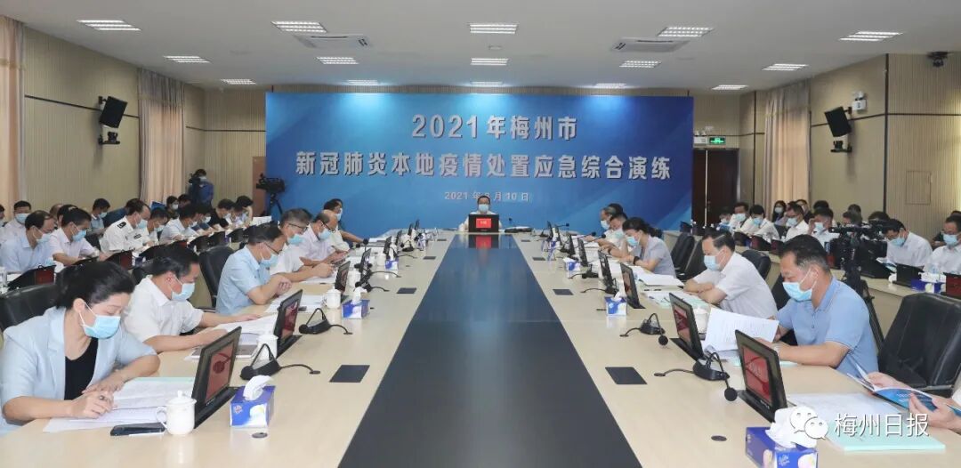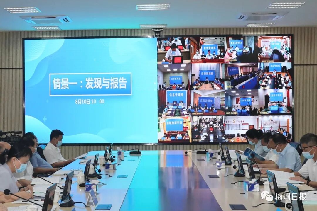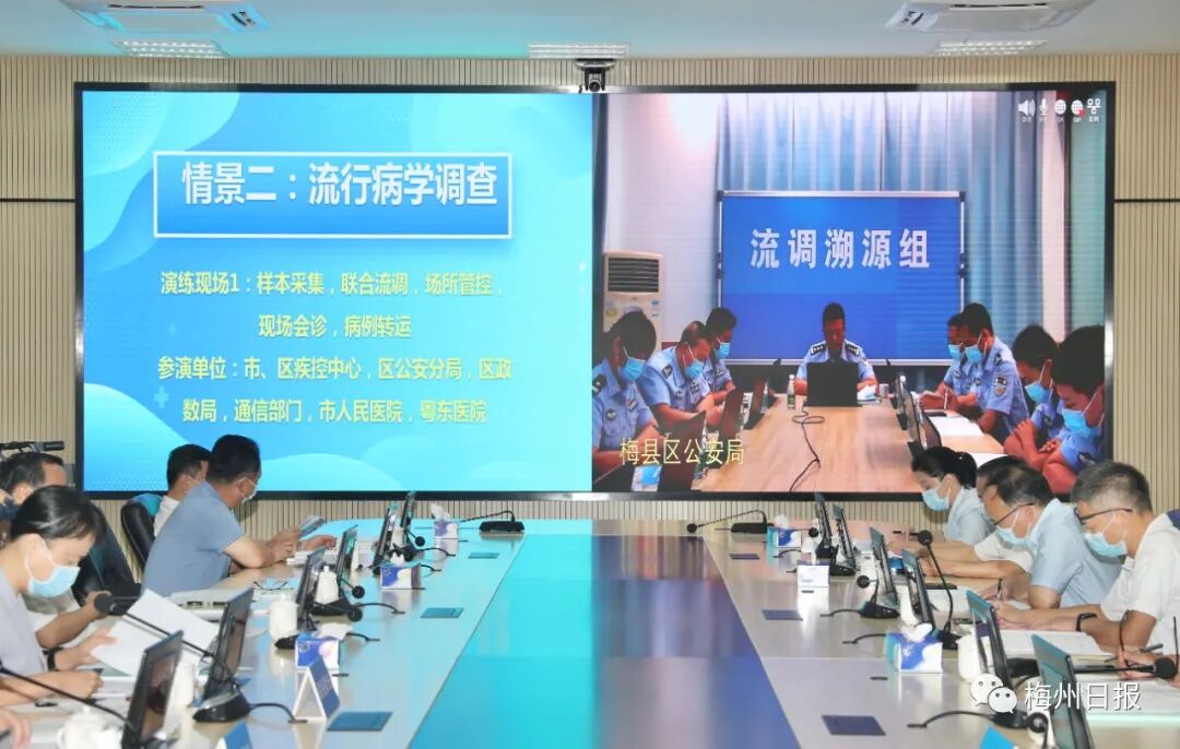 9时,演练正式开始。本次演练采用实战演练和桌面推演相结合的方式进行,共设置了6个演练科目和8个演练现场。在演练中,我市快速启动应急响应机制,按照“提级管控、属地处置”原则和《梅州市新型冠状病毒肺炎疫情防控指挥部办公室工作方案(2021年第2版)》工作机制,设立现场指挥部,开展流行病学调查、重点人员管理和社区管控、大规模人群核酸检测等一系列科学有效的防控措施,找出所有密接者和次密接者并实施集中隔离医学观察,达到疫情风险总体可控的目标。