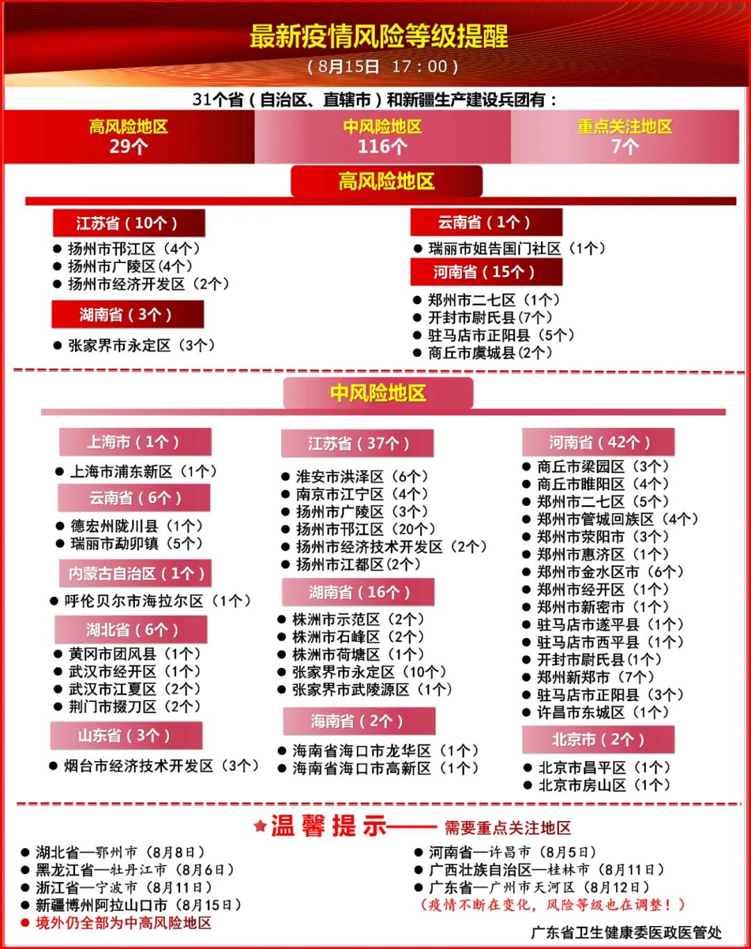 8月13日晚,广东惠州仲恺高新区防控新冠肺炎疫情工作领导小组办公室通报,8月13日中午,仲恺区接到湖北荆门一例确诊病例的信息通报,涉及仲恺密切接触者胡某某。