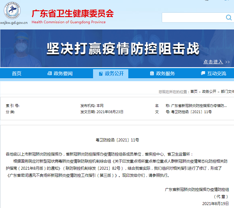广东省密闭通风不良场所新冠肺炎疫情防控工作指引(第三版)