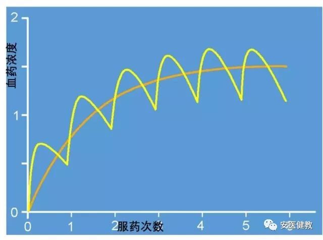 每位患者服药后,体内的血药浓度并非一成不变,而是一个动态变化的过程。就像爬山一样,随着患者服药,药物吸收入血,血药浓度逐渐升高,到达山峰的顶端,机体同时开启清除模式,将药物清理出体外,血药浓度也随之下降,渐渐进入山谷,随后患者服用第二顿药物,血药浓度再次升高下降,循环往复。多次给药后,患者体内的药量渐渐达到稳定,呈现出固定的治疗效应。