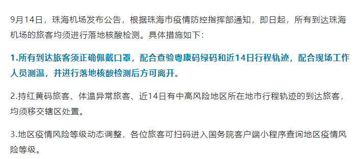 从福建省来(返)珠人员,需持48小时内新冠病毒核酸检测阴性证明!