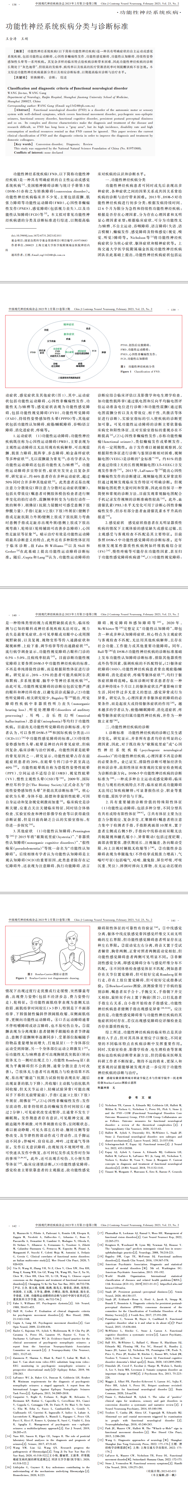 功能性神经系统疾病(以下简称功能性神经疾病)是一种具有明确症状的自主运动或感觉系统疾病,包括功能性运动障碍、心因性非癫痫性发作、功能性感觉障碍、功能性认知障碍、持续性姿势感知性头晕等一系列疾病。其复杂多样的临床特点给疾病诊断带来困难,因此功能性神经疾病的诊断长期处于“灰色地带”,但较高的发病率、病残率以及极高的医疗资源消耗率时刻提醒该病不容忽视。本文综述功能性神经疾病最新分类以及相应诊断标准,以期提高临床诊断与治疗水平。