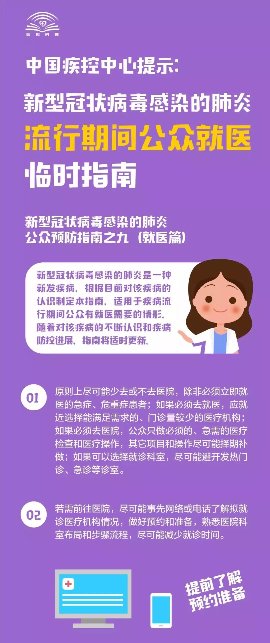 中国疾控中心根据现有对新型冠状病毒的认知,从日常生活、外出、看护者、就医、预防接种等 5 大方面给予 32 条预防建议。
